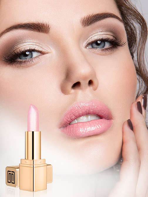 植物配方珠光唇膏,顏色是透明的,涂在嘴唇上,顏色會(huì )根據不同人的PH值改變,呈現亮亮的粉色效果。